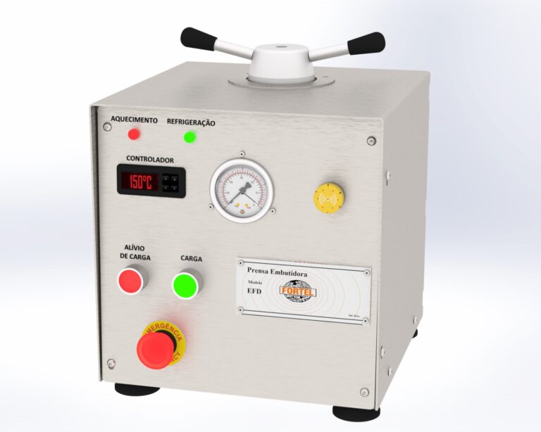 Sistema hidráulico com capacidade de 5 toneladas acionado por botão frontal; Válvula de alívio elétrica acionada por botão frontal permitindo a liberação da pressão após o processo de embutimento. Sistema de segurança do conjunto hidráulico, acionado automaticamente em caso de aumento excessivo da pressão. Manômetro analógico tipo Bourdon para leitura de pressão (até 280 KGF/cm).