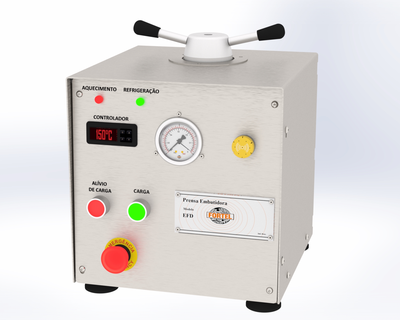 Sistema de controle digital e automático, permite que o usuário controle individualmente, através de display, os parâmetros: Temperatura da Operação, Tempo de Embutimento, Tempo de Refrigeração.